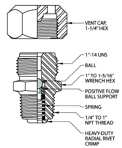 Vented Cap Positive Flow Body Grease Fittings |