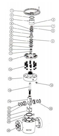 El FLS de MCM es una válvula de compuerta de paso completo y conducto directo disponible en clasificaciones de presión de 3000 a 15,000 psi y tamaños de orificio de 2-1/16" a 4-1/16". La válvula de compuerta estilo Cameron tipo 'FLS' de MCM tiene sellado bidireccional y vástago no ascendente, lo que la hace ideal para colectores de estrangulador y matanza de perforación, árboles de Navidad y servicio severo. Características de Diseño y Beneficios